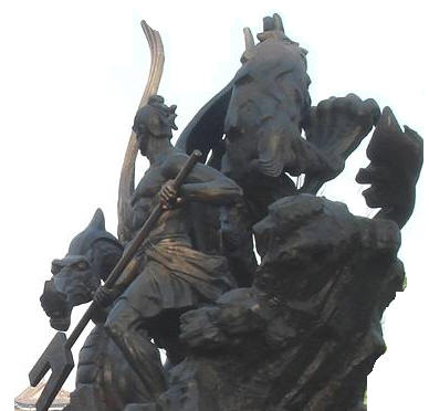 《述异记》:“龙五百年为角龙,千年为应龙”图为大禹治水时的应龙和玄龟雕塑