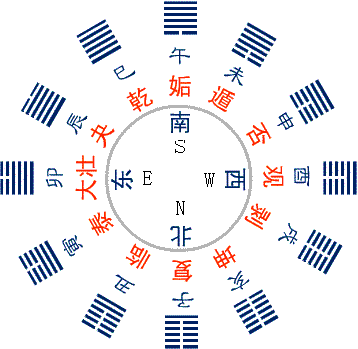《先天八卦方位图》乃宋·邵雍根据《说卦传》:“天地定位,山泽通气,雷风相搏,水火不相射;八卦相错,数往者顺,知来者逆”定的方位:乾卦纯阳,阴气全尽,阳气正盛之时也。巽卦,阴气始凝,阳气始亏之时也。坎卦,阴阳相搏,然阳气势力犹在,故以阳卦坎卦居此位。艮卦,阳气将尽,阴气将盛之时也。坤卦,阳气全尽,阴气正盛之时也。震卦,阳气始生,阴气将退之时也。离卦,阴阳相博,然阴气气势力犹在,故以阴卦离卦居此位。兑卦,阴气将尽,阳气将盛之时也。自震至乾,为阴消阳长之时;自巽至坤,为阴长阳消之时也。