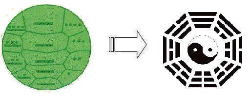 龟背(乾→南)、龟腹(坤→北)、头(离→东)、尾(坎→西)、四肢(震→东北、巽→西北、兑→东北、艮→西北)象伏羲先天八卦