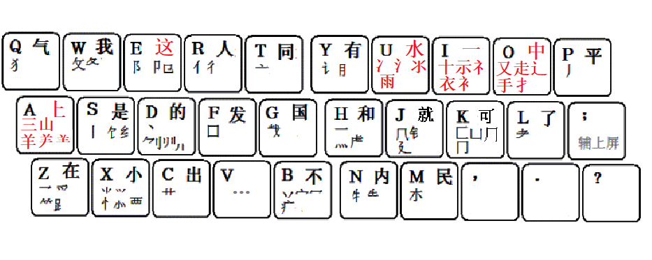 元码键盘映射表100%以拼音为基础,仅取拼音的音首或韵首。